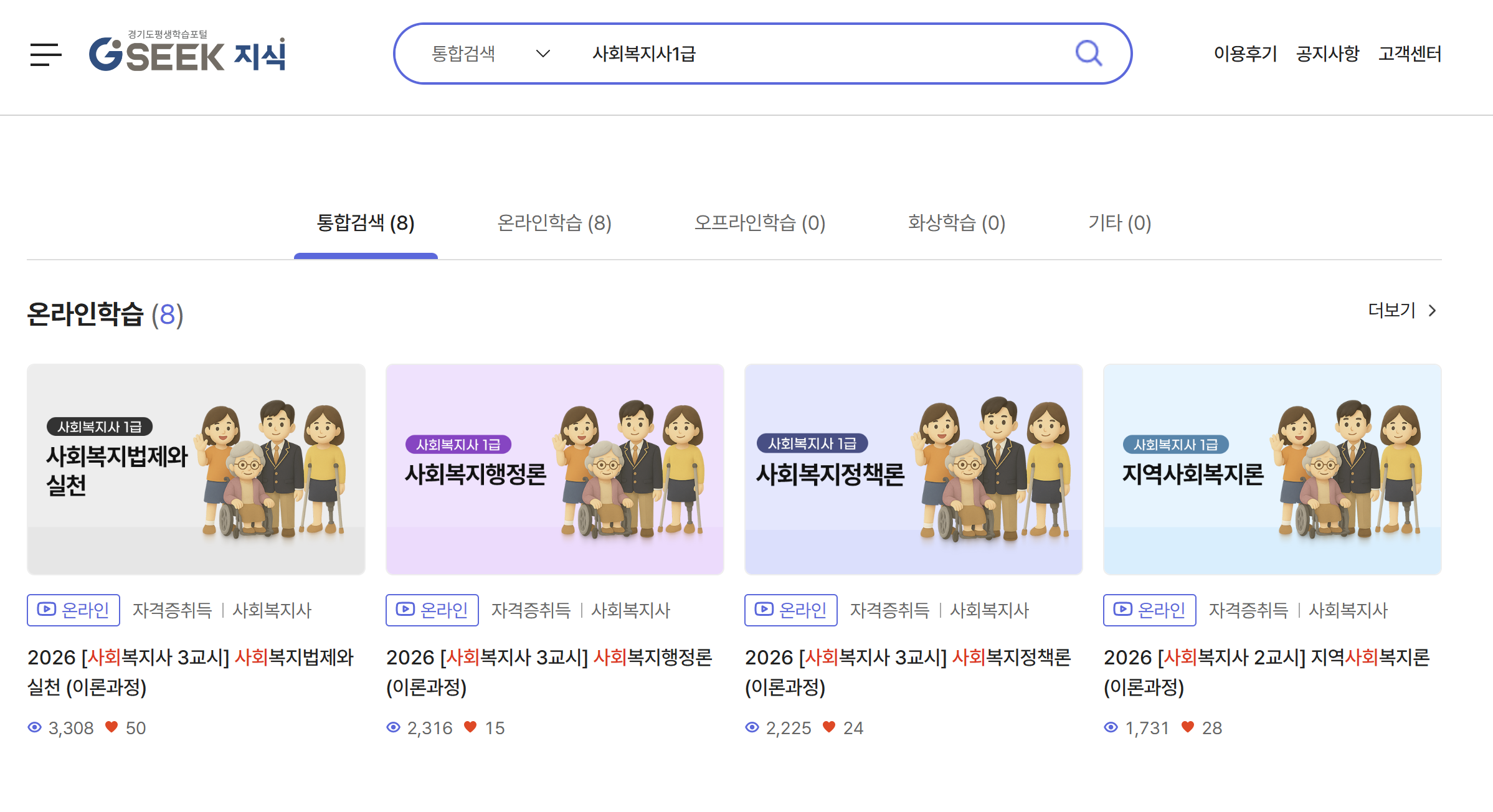 경기도 평생학습포털 지식(https://www.gseek.kr/)에서 사회복지사 1급 과목 수강하기(무료, 광고아님)